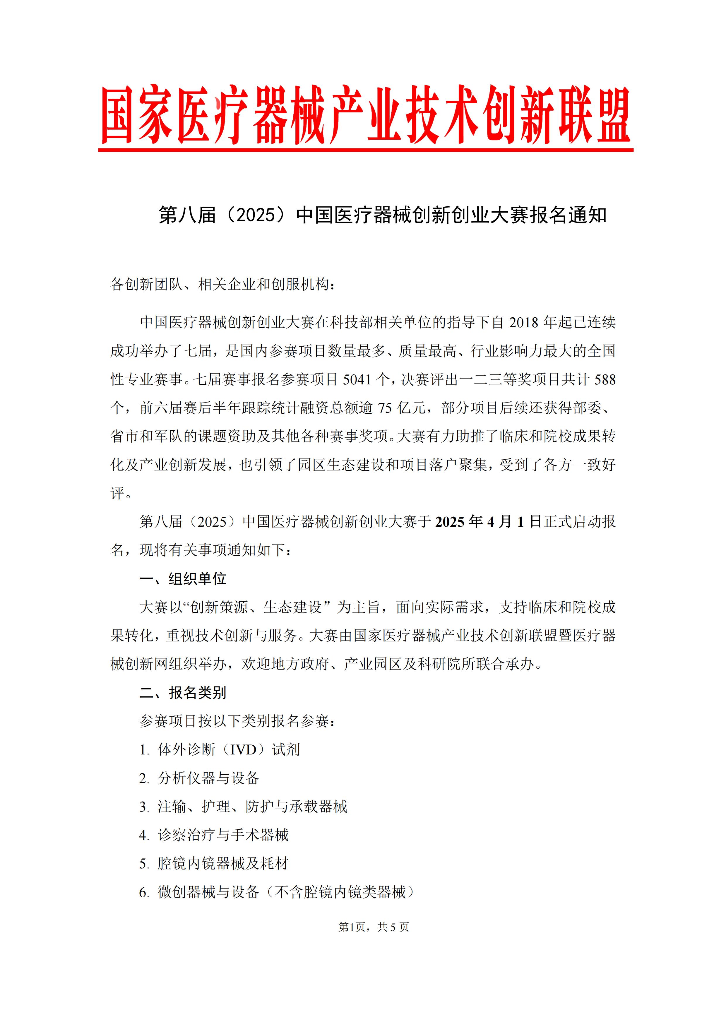 第八届(2025)中国医疗器械创新网创业大赛于2025年4月1日正式启动报名,现将有关事项通知如下: